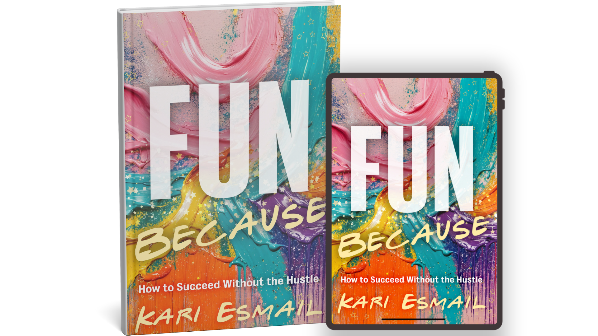 In Fun Because, Fun Coach Kari Esmail combines witty humor, personal anecdotes, and research to help you break free from the pressure and overwhelm of hustle culture — and embrace a life filled with FUN.